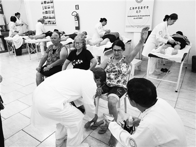 巴西中医药学会会长叶富坤告诉记者,自2003年以来,在每个月第一个星期天,学会的针灸师都会前往圣保罗南部做义诊,一直坚持了16年,在那里就诊的病人现在已有二三百人。这家老年人活动中心的义诊点是6年前设立的,每次来的病人也有近百人,且多为60岁以上、患有慢性病的老年人。
