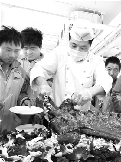 记者在现场了解到,每期“家宴”现场,北京苏宁易购管理层都会化身大厨,亲自为快递员们服务,“你们已经服务了千千万万的消费者,今天你们好好坐着就行了,由我们为你们服务!”烤全羊、皮皮虾、烤鱿鱼、羊肉串、扇贝……忙忙碌碌的快递员们围坐在一起,品尝美味佳肴共叙友情。据悉,这是北京苏宁物流特地为快递员们举行的“团圆”计划,以此感谢他们在一线岗位的辛勤付出和执著坚守。