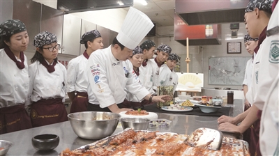 据教务处副主任向军介绍,专业群一直注重品牌建设,借鉴英国现代学徒制和德国双元制开展深度校企合作,实施人才培养模式改革;按照四五星级酒店标准,建设了行业一流水平的实训基地;常年把企业大师、行业专家请进来授课,组织学生参与业内各项活动;与德国、法国、芬兰等国家的职业院校合作办学,设立学生海外研修等项目,提升人才培养品质。