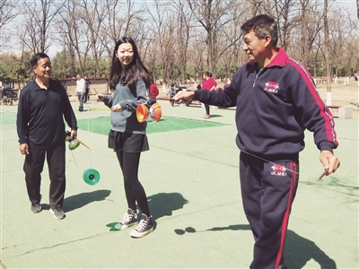 “当双手握杆抖动空竹做各种花样技巧时,上肢的肩关节、肘关节、腕关节,下肢的胯关节、膝关节、踝关节,加之颈椎,腰椎都在不同程度运动着。同时,想要完成一个完美的空竹表演还需要脚步跟随,巧妙配合才能完成既定的花样动作。在这个过程中,全身都可以得到锻炼呢。”王慧告诉记者。