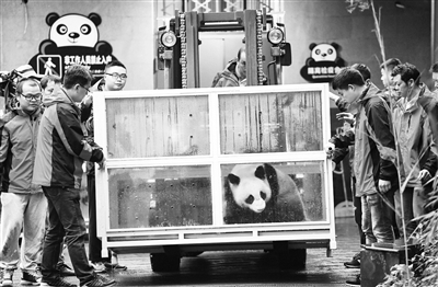 4月29日,大熊猫“如意”“丁丁”离开位于四川省雅安市的中国大熊猫保护研究中心雅安碧峰峡基地前往俄罗斯,开启为期15年的中俄大熊猫保护研究合作项目。图为在中国大熊猫保护研究中心雅安碧峰峡基地,工作人员将大熊猫“丁丁”运往运输车。 新华社发