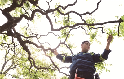“我虽然喜欢植物,但是上班之前,并没有系统学习过相关知识。尤其对病虫害,一点都不懂。”陈旭介绍说,有一次,他突然在公园的碧桃上发现了一种特别的蛾子。因为从来没见过,当时心里还有点慌。于是,连忙找了一本《园林病虫害大全》,一页一页的翻找。终于知道了那种蛾子名叫桃潜蛾。从那之后,他就下定决心,不仅要在实践中学习,还要完善专业知识。