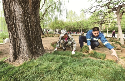 “我们这个工种,一年四季没有闲的时候。”陈旭边说,手上也没闲着。“比如这个时节,我们主要修剪花冠木和绿篱。另外,就是为‘五一’劳动节的景观,种植花卉。”