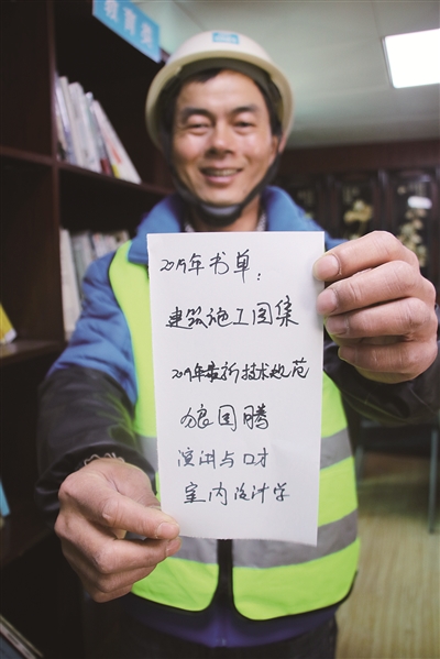 今年,他给自己制定了一份书单,大多是与自学考试相关的书籍,他说他要在“书屋”里埋头苦读,为自己加油充电,为以后转型成为产业工人做足准备。