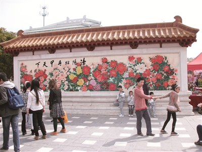 园内游人如织,或小憩于柳丝之下,或流连于花丛之中,或留影于牡丹花前,或静静地对花写生。整个园内人头攒动,好不热闹,此情此景,仿佛白居易所描绘的盛唐时期洛阳“花开花落二十日,一城之人皆若狂”的情景重现。置身牡丹花海,只见青叶漫漫间,牡丹群芳丰姿绰约,或形似蟠桃含苞待发,露出一抹嫣红;或悄然绽放,呈现出一种“映叶多情隐羞面,卧丛无力含醉妆”的自然之美,清香四溢,令人怡然陶醉。细细观赏,只见牡丹花开单瓣、重瓣兼有,有的如荷花盛开,有的如菊花怒放,有的如绣球丰满,有的如黄金蕊绽,层层叠叠,高低错落,千姿百态,红、粉、黄、紫,白、黑、蓝、绿,花色艳丽姹紫嫣红,争奇斗艳各具风韵,不禁令人联想到欧阳修盛赞洛阳牡丹的诗句“洛阳地脉花最宜,牡丹尤为天下奇”,一种对牡丹的敬畏之情顿时油然而生。