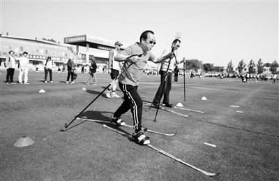 5月9日,东城区体育馆路街道第十届社区体育文化节在北京天坛体育活动中心田径场拉开帷幕。体育馆路街道办事处副主任刘洁介绍,本次运动会特设滑雪和冰壶两项冬奥体验项目,让居民在家门口体验旱地滑冰的乐趣,进一步了解滑雪、冰壶等冬奥项目相关知识,献礼冬奥。“今天的开幕式综合运动会,别开生面,其中我印象最深的项目还是‘越野滑雪’项目,有专业教练教我们使用雪板和雪杖,能切身体会到冬奥项目的乐趣,对话冬奥,我觉得特别自豪。”家住体育馆路12号院的居民谢俊霞说。