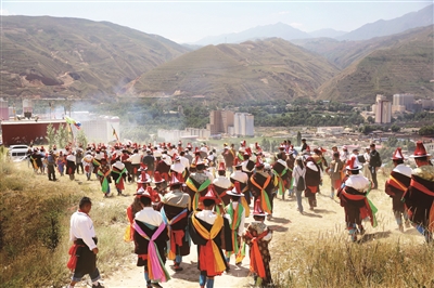 每年农历六月,古城各个村寨的藏族、土族人民都会穿起节日盛装,吹响圣洁的白海螺,敲着吉祥的龙鼓,煨起浓浓的桑烟,举行神秘原始的“六月会”祭神仪式。这个活动上,有神秘的上“口钎”与“背钎”仪式,男孩子长到十几岁须经过这个仪式才能成人。