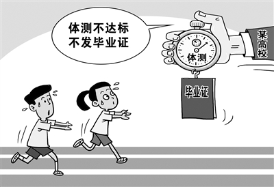 为“拯救”下滑的大学生体质,记者了解到,部分高校陆续祭出“杀手锏”:体测不达标,不发毕业证。还有高校用APP考核学生日常锻炼情况,纳入体育课考试成绩……这众多手段,又能否真正“拯救”日趋下降的大学生体质?(5月27日新华社)
