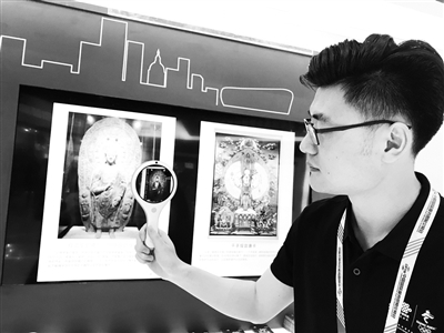 在联通的5G展区,可以用手持终端观看修复后的文物。手持终端的外表与放大镜的样子相似,实际是一个平板电脑。“博物馆里展出的破损或者褪色文物,比如没办法修复的残缺佛像,可以通过后期软件建模复原。参观者就可以用手持终端,‘修复’后的文物就以3D立体的方式呈现出来,同时还有语音讲解。”工作人员介绍。目前,在中华世纪坛,还有敦煌、玛雅的文物展出时,使用过这项技术,这可以让参观者看到文物的原貌,又不破坏文物。据了解,这项技术是基于5G的基础上,将海量数据上传云端。