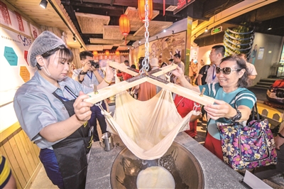 图为市民近距离了解老字号“王致和”350年的历史、传承与创新,感受传统美食的制作技艺与独特美味。周美玉 摄