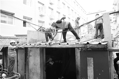 本报讯(记者 边磊)100余平方米的违建霸占了楼宇间的空地,成了安全通道的“拦路虎”。6月5日,东城区安定门街道组织城管、消防、安监、公安等部门依法对其进行了拆除。