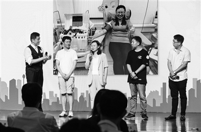6月12日,献血者代表李静(中)在活动现场讲述献血经历。当日,由北京市献血办公室主办的“为血液打造安全之城”2019年世界献血者日宣传活动暨“网聚爱心 热血青年”献血活动在北京举行。