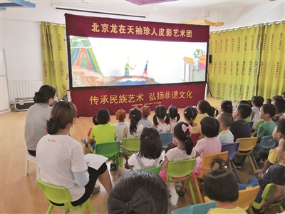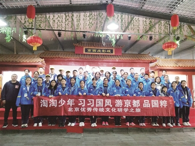皮影艺术是现代影视和动漫的起源,是一项综合的民间艺术,集绘画、雕刻、表演、口技、音乐、魔术、传说于一体,而中国京西皮影非遗园是全国第一家专业研究中小学生认知皮影艺术的非遗场馆,2011年被北京市教委评为《第二批中小学生社会大课堂资源单位》、《北京市民族艺术进校园演出单位》,在这里,同学们在高峰、孔令波等优秀的袖珍皮影演员的带领下,参观皮影艺术馆、观看皮影戏演出、亲手制作皮影人、分组即兴表演皮影戏、学跳皮影健身操……孩子们在愉悦中体验了中国优秀的传统文化——皮影戏。