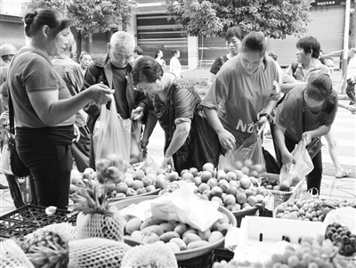 6月20日,赶集的群众在挑选水果。当日是农历五月十八日,恰逢四川长宁地震震中双河镇的赶集日,双河镇及周边的众多群众纷纷来到双河镇赶集。