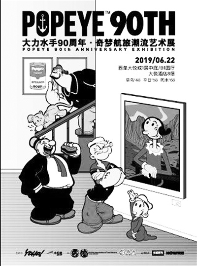 此次展览汇集了12个国家,50多位艺术家的80多件艺术品。届时,“大力水手”将驾着一艘双层复古“游轮”驶入西单大悦城中庭,带着参观者们来到大力水手的漫画世界,在10处场景中,趣味性地了解大力水手90年的历史与魅力。