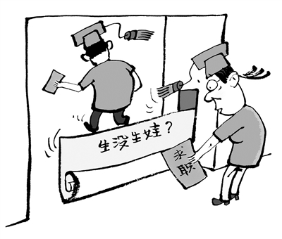 “我们可以录用你,但做这个工作要扛机器、拍片子,你5年内不能要孩子。”刚毕业的新闻学研究生张纯在面试西部某省级中医院宣传部的一份工作时被如此要求。“这简直就是就业歧视、生育歧视!”张纯气愤地说,招聘时用人单位还曾明确表示想招男生,“但当时没人报名,不得不录取我”。时值毕业季,不少应届毕业女生有与张纯类似的经历。(7月4日 《中国青年报》)□王铎