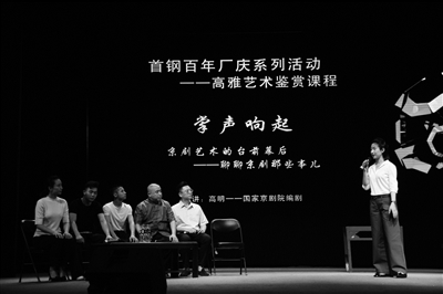 近日,“首钢百年厂庆系列活动——高雅艺术鉴赏课程”走进首钢矿山,近千名京剧爱好者齐聚一堂。本次活动邀请诸多艺术家讲解京剧艺术,表演并解析了《贵妃醉酒》《李逵探母》《三岔口》等经典唱段,还和矿山京剧协会成员进行了现场互动,让在场观众体验一台精彩的京剧艺术盛宴。本报记者 赵思远 通讯员 刘媛 摄影报道
