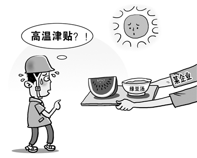 此外,记者采访发现,一些用人单位为减少高温津贴的发放,手段花样繁多:有的把高温津贴计算在最低工资标准内,或者把本该平时发放的奖金,一部分计为高温津贴;有的通过发放防暑降温物品替代高温津贴,用西瓜、绿豆汤打发了事。有工人算了这样一笔账:“西瓜2元一斤,绿豆汤3元一碗,一个月下来也只有几十元的成本,比发两三百元的高温津贴省多了。”