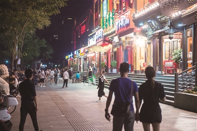 7月19日晚,记者前往东直门商圈感受“夜京城”的出行。当晚10点多,梁女士和朋友四人在簋街刚吃完小龙虾,正站在餐厅门口等候网约车。“不到一分钟就有司机接单了。”梁女士告诉记者。