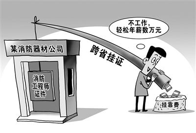 张泽涛是山东某建筑设计公司的建筑设计师。2017年,他把此前利用业余时间考取的一级注册消防工程师证件挂靠在朋友一家消防器材公司。“证放在他那里,一年给我8万元。”张泽涛说,“平时不用到岗上班,公司办资质的时候露露面就行了。”