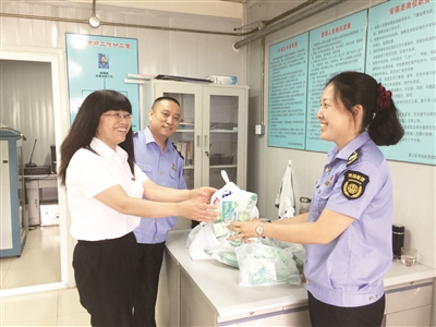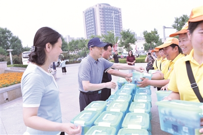 生态环境局工会:配发矿泉水15箱、藿香正气水15盒、驱蚊花露水15瓶,及时、有序地将“清凉包”送到机动车尾气执法检查站等一线执法人员手中。