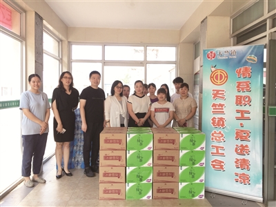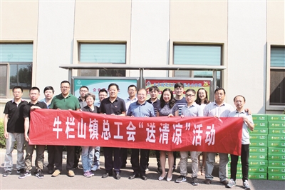 北石槽镇总工会:为辖区内北京世桥生物制药、北京诚济制药、北京梦天门科技等30余家企业及联合会的1600余人购置了2000余盒藿香正气滴丸、163箱茶饮料及485箱矿泉水,为在炎炎夏日坚守在一线的广大职工送去了清凉。