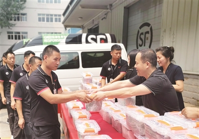 临空经济核心区工会:北京临空经济核心区副调研员梁维刚,工会副主席黄红连一行带着“清凉包”走进顺丰速运北京区总部,慰问一线快递员,送去红豆、绿豆和冰糖等防暑降温物品300份,拉开送清凉工作的序幕。今年临空核心区工会共投入资金30万余元,通过慰问走访、12351平台服务线上线下两种方式开展夏送清凉活动,惠及职工4000余人。