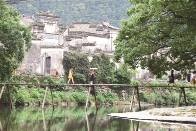 古镇的几座木桥横跨瑶河,成为连接小镇的动脉。小镇的人喜欢在木桥上慢慢地走,看身影倒映河中,看两岸古宅如画,看线条明晰的院落计数岁月的流程。脑海里顿时涌出那句脍炙人口的诗:“你站在桥上看风景,看风景的人在楼上看,明月装饰了你的窗子,你装饰了别人的梦……”在一棵华荫如盖的大榕树下,一座简陋的木板桥伸向对岸,当年,电影《闪闪的红星》就是在这里拍摄的。