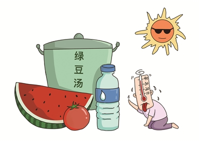 要多喝绿豆汤。中医认为,绿豆性味甘寒、入心、胃经,《本草纲目》记载:绿豆可消肿下气、清热解毒、消暑解渴、调和五脏、安精神、补元气、滋润皮肤;豆粉解诸毒、治疮肿、疗烫伤;绿豆皮解热毒、退目翳;绿豆芽可解酒、解毒,绿豆富有蛋白质、多种维生素以及无机盐,能及时快速补充丢失的营养物质,绿豆磷脂有增进食欲作用。