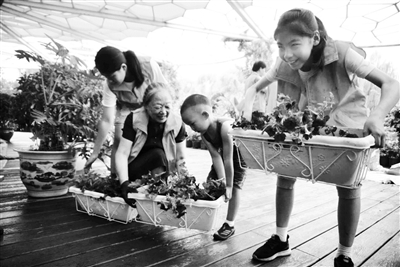 实践过程中,有的家长完全当上了“甩手掌柜”,任由孩子动手发挥。一会儿的功夫,一个个漂亮的悬挂花钵就制作完成。大家纷纷把花钵配上铁艺挂钩悬挂到木质栅栏上,并将劳动成果留在手机中。“我和孩子都喜欢花,可是平时没有什么机会自己种。我觉得这个活动挺好,一方面锻炼了我们的动手能力,另外一方面也为城市增添了绿色景观,希望以后能多多举办类似活动。”参加活动的家长开心地表示。陈艺 摄