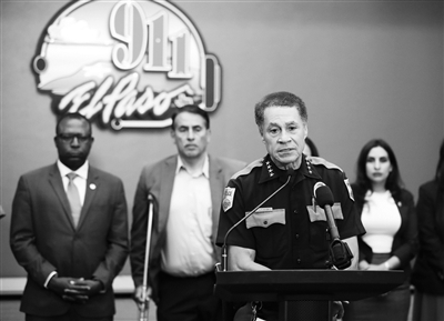 美国得克萨斯州埃尔帕索市警方8月5日公布了3日枪击事件中遇难者的身份,22名遇难者中包括13名美国人、7名墨西哥人和1名德国人,另有一名遇难者的国籍尚未公布。 图为在美国得克萨斯州埃尔帕索市,市警察局局长格雷格·艾伦(前)在新闻发布会上讲话。新华社发