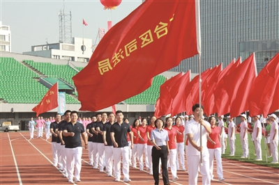 “加油、加油······”随着赛场上不断传来的呐喊声,区司法局工会一年一度的趣味运动会也在秋高气爽的季节拉开了序幕。作为干部职工最受欢迎的活动项目之一,区司法局工会精心设计的趣味运动会集娱乐性、趣味性、协作性与竞争性于一体,工会新添置了“众星捧月”、“高山流水”等多个新设备,让每一个活动项目充满了新鲜感,让每一位职工能够积极主动地参与到体育运动中来。趣味运动会设有沙包掷准、飞镖掷准、定点投篮、定点射门、跳绳、踢毽等多项对个人体育竞技水平的展示的单人比赛项目,又有对团队协作能力检验的快速运送、集体跳绳等集体比赛项目,为所有参赛队员提供了展示自身才能的机会,做到人人有活动,队队能参与,比赛现场笑声、掌声、喝彩声此起彼伏,大家拼体力、拼智力、挥汗水,享受着努力、协作带来的快乐,展现了工会会员们勇于拼搏的良好风貌。