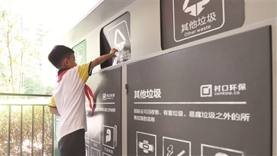 近日,浙江杭州新修订的《杭州市生活垃圾管理条例》获批通过,条例明确,违反垃圾分类规定行为或将被记入个人、单位的信用档案。图为一位志愿者通过扫描二维码对垃圾投放者进行评分。