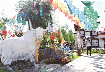 8月15日,游客在北京世园会西藏园参观。当日,2019年中国北京世界园艺博览会“西藏日”活动在北京世园会园区举行。(相关报道详见第3版)