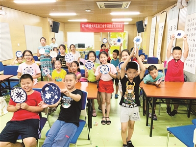 今年,大兴区清源街道总工会共开设了7个托管班,其中大兴区职工子女服务协会承办了其中的3个托管班。该协会负责人马元波告诉记者,去年参加过托管班的孩子今年100%都报了今年的托管班,可见家长和孩子对托管班的满意度非常高,切实解决了双职工家庭的后顾之忧。结业仪式上,家长秦涛为孩子一个月来的托管生活竖起了大拇指,“暑期托管班的开办对职工家属来说非常及时、有帮助,体现了工会对职工帮助的精准定位,为大兴区职工家庭解决了暑期照顾孩子的后顾之忧,能让职工全身心投入到工作中。”秦涛还说,孩子的收获也不小,托管班丰富的课程,让孩子不仅学习到了课本之外的知识,还能在托管班老师的辅导下更好地完成暑期作业,结交了许多新朋友,锻炼了他们的交友相处能力。