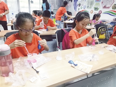 这边,天宫院街道的暑期托管班也是精彩不断,精心设置的主题课堂好玩又有意义。不但开展了折纸、剪纸艺术、团扇等中国传统工艺课堂,小小“科学家”们最爱化学兴趣实验课堂。一堂“点水成冰”的实验课,孩子们动手体验到了“点水成冰”的神奇,老师还揭秘了魔术背后的原理,让孩子们充分感受到了化学的魅力,并通过“点水成冰”实验的失误点让孩子们明白了科学的严谨性。