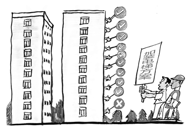 上下楼梯,是居民出行的第一步,也是回家的最后一步。近年来,为破解老年人“爬楼难”的问题,全国不少地方将在老旧小区加装电梯提上日程。然而,楼上期盼强烈,楼下坚决反对,不少老楼加装电梯项目由于低层住户的“一票否决”而搁浅。(8月26日 《检察日报》)□王成喜
