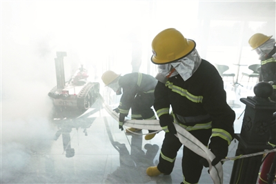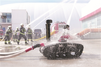 演练中,石景山消防救援支队接到报警后,共出动13部消防车、65名指战员赶赴现场处置灾情。值得一提的是,此次演练进行了消防机器人测试。消防机器人在灭火救援中发挥着举足轻重的作用,可代替消防救援人员进入易燃易爆、有毒、缺氧或浓烟等危险灾害事故现场进行探索、搜救、灭火,有效解决了消防救援人员在上述场所面临的人身安全威胁、数据信息采集不足等问题。