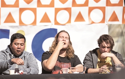 8月31日,澳大利亚首都堪培拉市中心的广场上举办吃辣椒大赛,吸引众多市民观看。数十名参赛者面临吃掉十几种来自世界各地的“顶级”辣椒的挑战。他们每轮需要在规定时间内吃掉一个辣椒,经过几轮角逐最后决出胜利者。图为在澳大利亚堪培拉,选手们参加吃辣椒比赛。新华社发