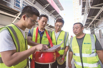 “作为一名农民工,我见证了北京这些年的发展。”吕兆春是湖北十堰人,今年49岁。1993年加入公司,现任公司第十项目部安全员,参建了外交部大楼、东方广场、北京西站、北京南站、中国尊等标志性工程。