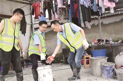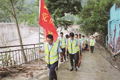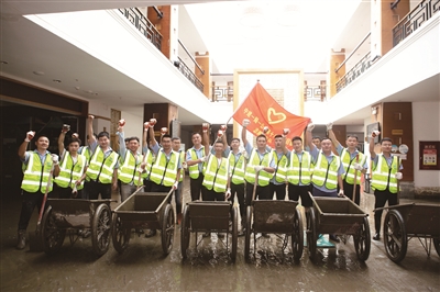 在当地抢险救灾指挥小组的安排下,中建一局项目部的志愿者兵分两队,一队由项目党支部书记、大项目部经理兰正见和万达茂项目经理闫治礼带队,奋战水磨古镇游客中心;一队由住宅三期项目经理周田亮和酒店群项目经理邵坤带队,到黑土坡村帮扶村民恢复家园。