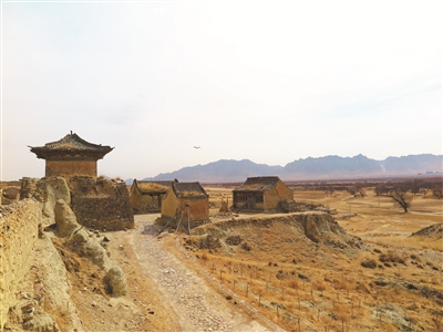 第二天清晨早起,徜徉在旧堡的街道,两旁尽是干打垒的民房,枯树枝从院子里呐喊着刺向天空。霞光撒入堡内,一片寂静,偶尔传出几声狗吠。坐在断石条上,不禁想到了余秋雨的那句“我寄情于‘废墟’……‘废墟’是诀别,是选择。时间的力量,理应在大地上留下痕迹。”