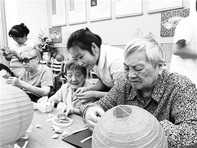 活动中,老人们亲手设计别致花灯、精美贺卡,剪彩纸、贴彩画,共迎中秋佳节。老人们在家人与医护人员的陪伴下或在灯笼上写书法,或是画上嫦娥和玉兔,还有把对亲人的思念之情寄托在灯笼上,不管是具象还是抽象,每一个作品都独具一格。