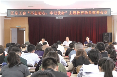 本次动员部署会拉开了区总工会开展“不忘初心、牢记使命”主题教育的序幕。会前,区总工会开展了学习党的创新理论小测试,检验全体党员先学一步的学习成果,并专门为党员个人自学准备了笔记本。