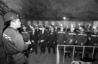 更让我对朱老师难以忘怀的是他的教学注重实践。培训时间最后10天,朱老师带着我们到井下安全实习。从戴上安全帽、背上矿灯和自救器的那一刻起,朱老师就开始了他的的安全实践课。首先他自己掏出内衣兜内的香烟,放在更衣箱里,把工作服和安全帽穿戴整齐,然后再开始指导我们。比如安全帽要戴正,矿灯头应该戴在头上,自救器和矿灯盒子要左右分开,先检查一下矿灯漏不漏火碱水,灯泡亮不亮,自救器好不好使等等。32名新工人,他一一查看,直到大家全都佩戴正确无误了,才领着我们坐上人车。