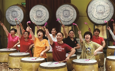 “演出时我们真的很激动,不仅打出了军庄大鼓的气势,还展现了中国人民的豪情万丈,鼓声阵阵象征着我们的生活越来越好。”提起当天的演出,51岁的军庄大鼓队员何银花依旧难掩激动。