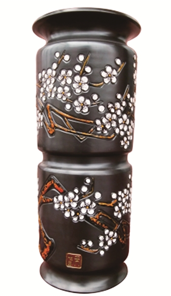 黑陶艺术过去很少从装饰材料的角度探索艺术的发展途径,更多的是其对本身的材质、造型、图案及雕刻技法方面去挖掘整理。而对于其他工艺材料在黑陶上的嫁接应用疏于研究,这使黑陶工艺在表现形式上,过于单调缺乏视觉张力。河北省馆陶县思月陶艺有限公司的陶艺家通过20多年在黑陶创作中的探索,并和清华大学美术学院乔十光教授等人合作,将漆画工艺运用于黑陶工艺中,使两种艺术语言结构相互融合,创造出一种全新的陶艺表现形式。新的陶艺形式不仅继承了黑陶的原始艺术特点,也使漆画艺术在陶艺上得以发挥和拓展,使传统黑陶艺术赋予多元,更具视觉性、艺术性、创新性、时代性。