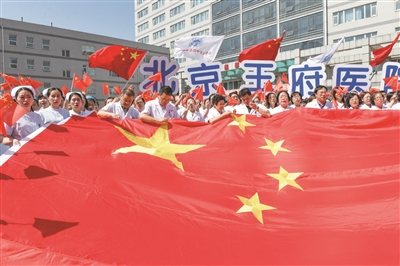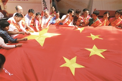 据了解,由首都万名劳动者手工绣制的巨幅国旗,将被首都博物馆永久收藏。