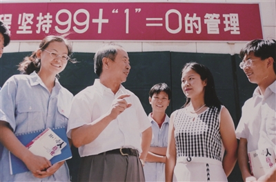 1998年夏天,我接到任务,要对时任北京开关厂厂长的黄国诚进行采访报道。当时,他已经是依靠职工办好企业的“首都楷模”了。刚一进厂,我看到他正在为青年管理层干部讲“99+1=0”的管理模式,我马上抓拍了这张照片。