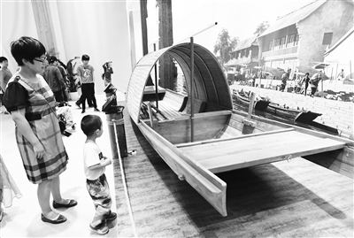 此外,大运河森林公园还设置了“古今同辉”“决胜小康”“携手远航”三大展区。在“古今同辉”展区,既有用多媒体手段构建的立体运河图景——“运河风韵”,又能在可触摸点亮的运河线路图上了解每个点位发生过的人物传记和历史故事。在用动态的形式展现潞河督运图前,一位女士便在图中认出了祖上自己家,并指给自己的外孙看。她说:“带孩子来看,就是想让他记住祖先,传承运河文化与精神,为未来副中心的发展建设添一份力。”“决胜小康”展区通过沉浸式互动体验平台、先进楷模的工作剪影以及脱贫致富故事等内容全面展示了国家精准扶贫所取得的杰出成果;“携手远航”展区则以数字沙盘技术,配合平面、多媒体的展览形式,展示了“京津冀”协同发展和“一核两翼”建设成果。
